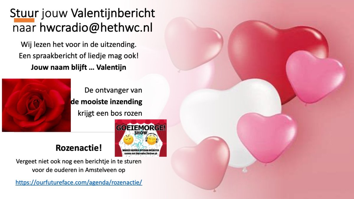 De DJ's lezen de gedichten (anoniem) voor en belonen de mooiste inzendingen met een bos rozen voor de geheime liefde!