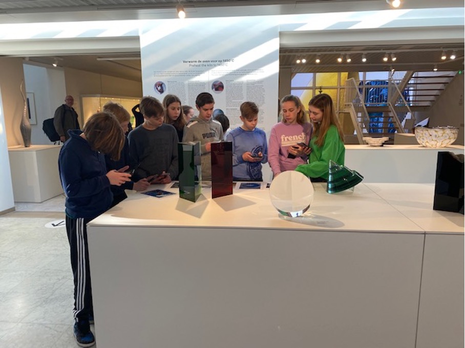 Vrijdag 18 Maart bezochten de eerste klassen museum Jan (van der Tocht) in Amstelveen. De leerlingen maakte kennis met de glascollectie van het museum. Ze kregen de opdracht om met behulp van hun telefoon één digitaal campagneaffiche te ontwerpen. Vol enthousiasme werden de glaskunstwerken gefotografeerd. Ik was trots op de interesse en aandacht die de leerlingen toonden. Er werden mooie foto’s gemaakt en goede vragen gesteld.
