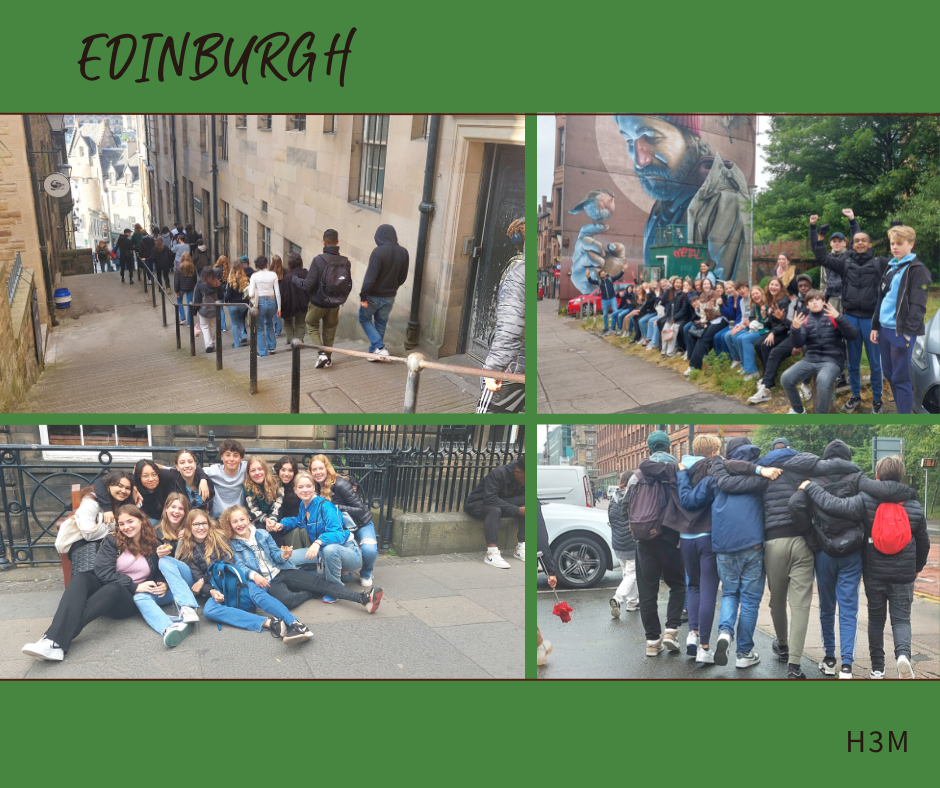 Van 6 tot en met 9 juni was klas h3m in Edinburgh. Eindelijk kon deze groep inhalen wat ze gemist hadden door corona. Het was een zeer geslaagde reis met een interessant programma in een prachtige stad en (meestal) de zon! Op het programma stond onder andere een wandeling over Arthur’s Seat, een bezoek aan Dynamic Earth (science museum), een spannende ‘Fright Night Tour’ en diner bij de beroemde UK based Nando’s.