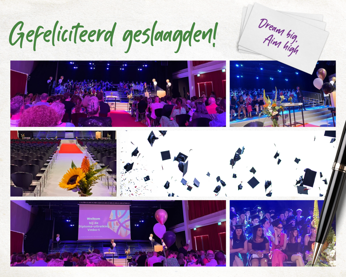Zittend op het podium in afwachting tot je naam werd geroepen en je naar de tekentafel mocht komen. Dat ene moment, waar je zo hard voor hebt gewerkt, werd bezegeld met je eigen handtekening. Een einde aan je middelbareschooltijd is gekomen. De wereld ligt aan je voeten, het is tijd om je vleugels uit te slaan. En met de basis op zak, weten wij zeker dat dat helemaal goed gaat komen!