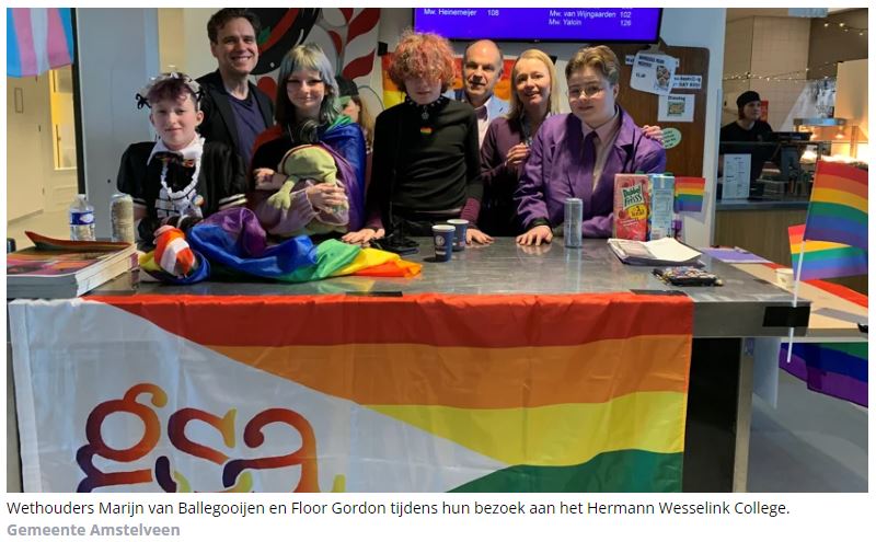 Amstelveense scholen kleurden vrijdag gedeeltelijk paars. Diverse leerlingen en docenten zetten zich zo in voor LHBTI-acceptatie op hun school. Wethouders Floor Gordon en Marijn van Ballegooijen bezochten het Hermann Wesselink College (HWC). “Het is echt belangrijk dat scholen hier zichtbaar aandacht aan besteden,” aldus Van Ballegooijen. Hij wijst erop dat de middelbareschooltijd een spannende tijd in het leven van jongeren is. "Je ontwikkelt je en je ontdekt wie je bent. Hoe erg is het dat er jongeren zijn die in zo’n cruciale levensfase niet uit de kast durven komen of zichzelf durven te zijn,” stelt Van Ballegooijen.Lees verder