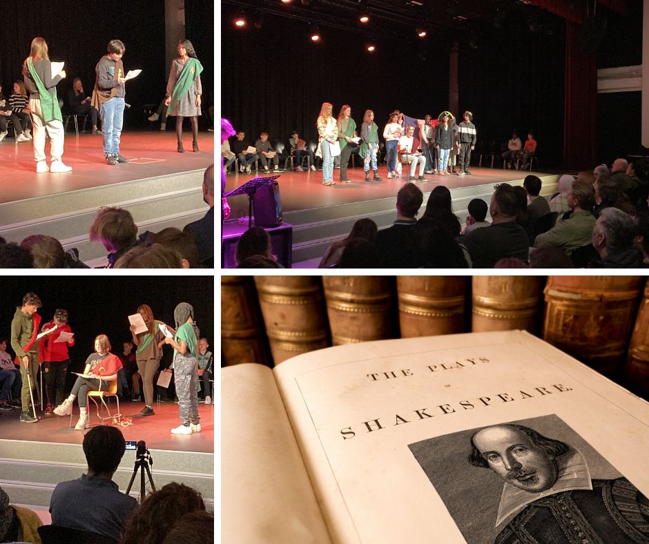 Vorige week hadden de leerlingen van de tweetalige 1e klassen een bijzondere activiteit: zij gingen een hele dag aan de slag met een Shakespeare-workshop, waarbij ze met elkaar het toneelstuk King Lear van William Shakespeare instudeerden. 's Avonds werd de voorstelling voor de ouders opgevoerd. Aangezien deze activiteit deel uitmaakt van het internationale buitenlesprogramma, hebben de leerlingen het stuk in het Engels gespeeld, en wel in Shakespeares oorspronkelijke tekst!