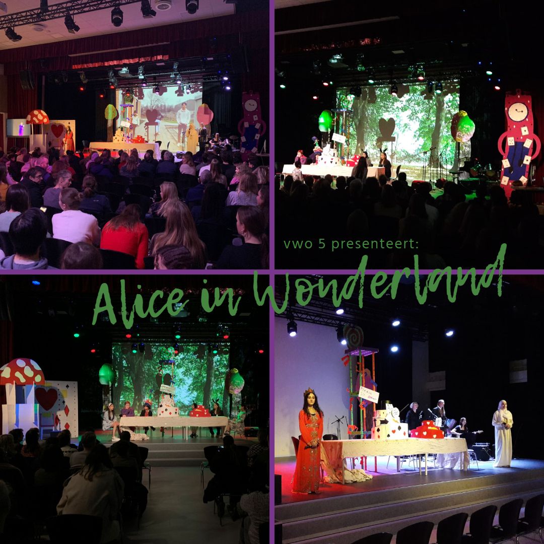 Op vrijdag 27 januari voerde vwo 5 - als afsluiting van het vak CKV - Alice in Wonderland op in de theaterzaal van het HWC.