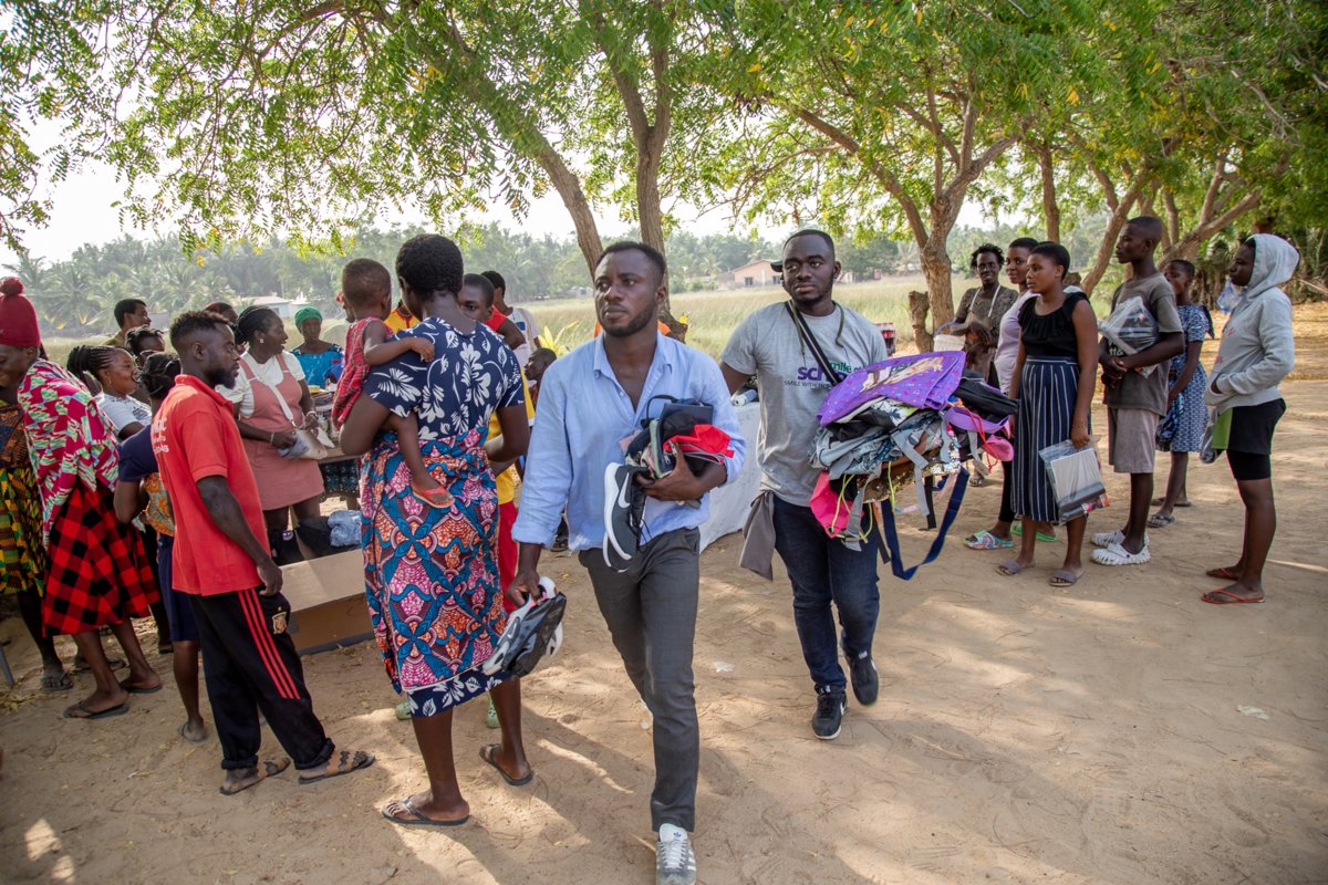 De Christmas hand-out was bij de Alorpkem community. Dit is een gemeenschap op het Ada Island ten oosten van Accra in de monding van de Volta rivier. De bewoners op dit eiland leven voornamelijk van de visserij en landbouw.