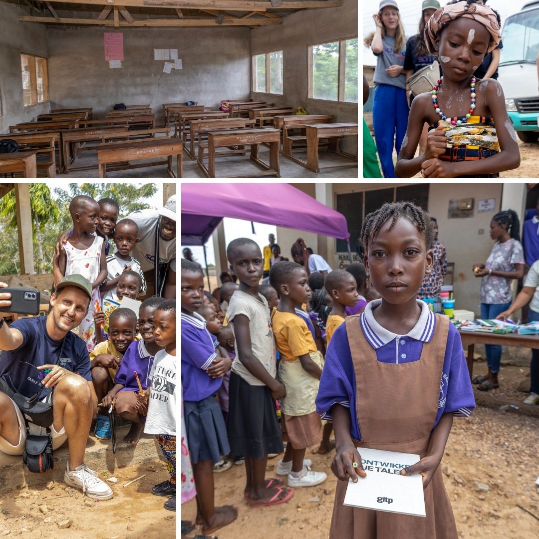 Spoiler alert!! Er kunnen mogelijk wat traantjes vloeien. Dat is bij velen van ons na deze bijzondere dag zeker gebeurd. We begonnen de dag vroeg. Met nog kleine oogjes zaten we om acht uur met z’n allen in de bus onderweg naar Cape Coast, waar we twee basisscholen zouden bezoeken. Wat mij opviel tijdens de vier uur lange rit, was dat er overal wat te zien is als je naar buiten kijkt. Je bent gewoon nooit uitgekeken, omdat het elke keer weer een verrassing is wat je gaat zien. Na heel wat hobbelige weggetjes kwamen we aan bij de eerste basisschool. Door middel van een dans en muziek werden we welkom geheten. Vervolgens gingen een aantal leerlingen om de beurt een soort gedichtje aan ons voordragen. Dit was zo bijzonder dat de meeste van ons een brok in hun keel hadden en sommige van ons, waaronder ik, lieten zelfs een traantje. Daarna hebben we nog samen gedanst en toen was het helaas alweer tijd om te gaan.
