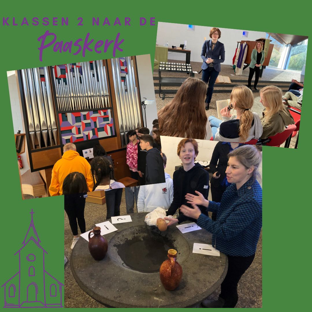 De klassen 2 gingen in de afgelopen week op excursie naar de Paaskerk in Amstelveen. De excursie vond plaats tijdens de les godsdienst in het kader van de lessen Christendom waar de leerlingen gedurende deze periode les over hebben gekregen.