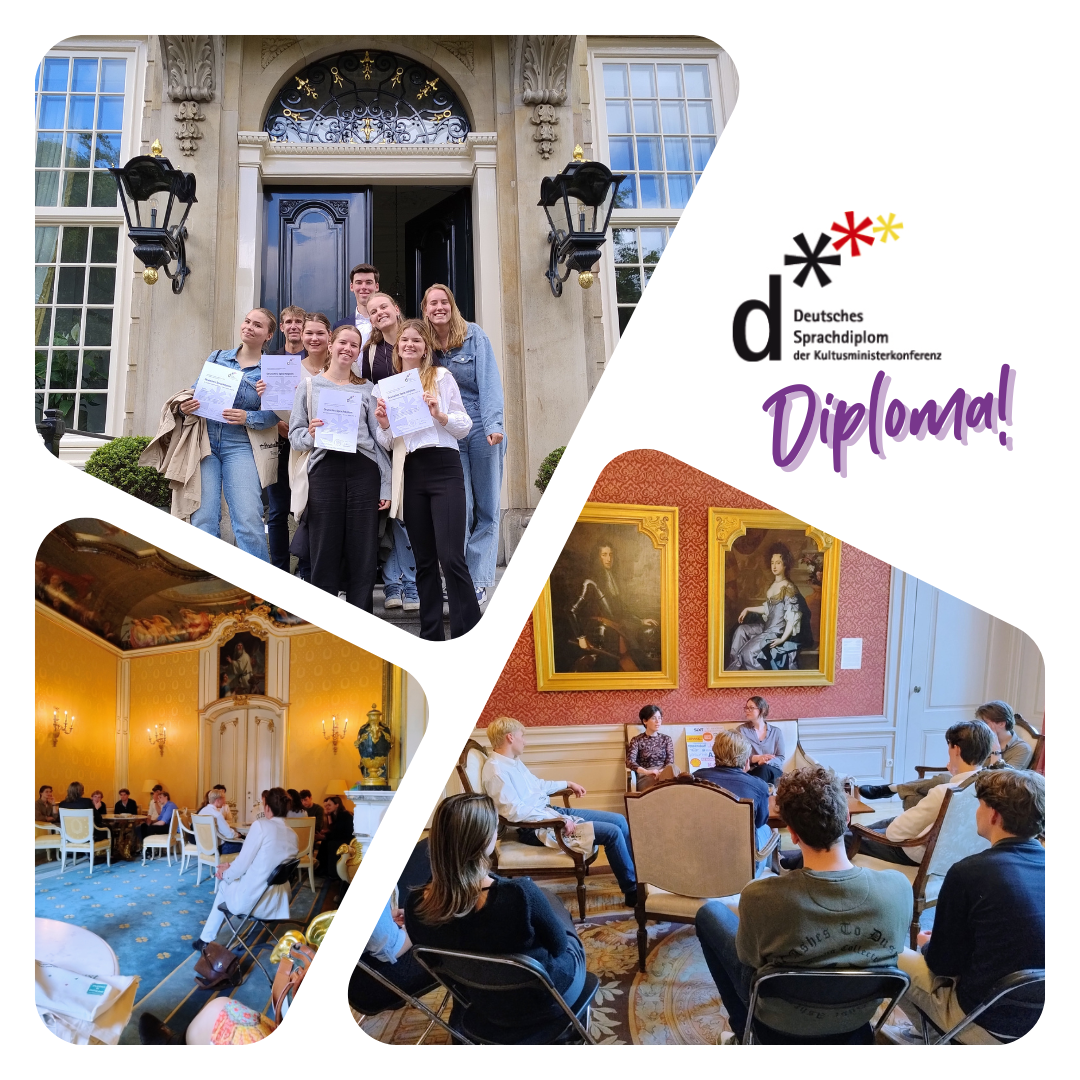 Op dinsdagmiddag 11 juni ging een groep leerlingen - die dit jaar waren opgegaan voor het Deutsches Sprachdiplom - naar Den Haag voor de uitreiking van de DSD2-diploma’s. Ze werden ontvangen in de residentie van de ambassadeur van de Bondsrepubliek Duitsland, Huis Schuylenburch. Er waren afgevaardigden aanwezig van o.a. het Duitsland Instituut, de Deutsch-Niederländische Handelskammer en de Universiteit Aachen, die over Duitsland en het werken en studeren daar geïnformeerd hebben.