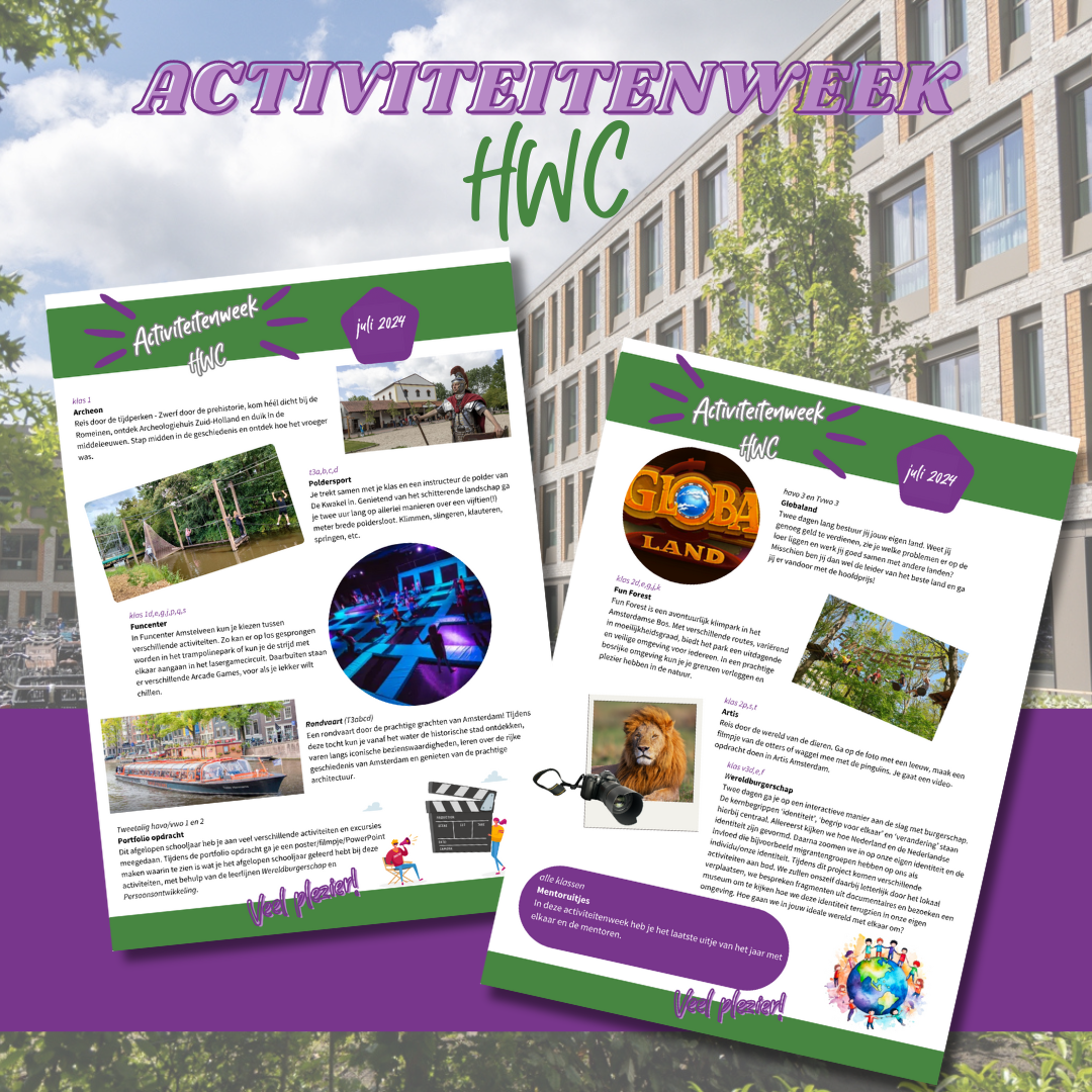 Volgende week is het alweer tijd voor de laatste activiteitenweek van dit schooljaar. Leerlingen van klas 1 tot en met 3 kunnen uitkijken naar diverse leuke en leerzame uitstapjes. Wat staat er zoal op het programma? Springen in trampolinepark Funcenter, een reis door verschillende tijdperken in Archeon, een video-opdracht in Artis, klimmen in Fun Forest, slingeren en klauteren bij Poldersport en een rondvaart door de grachten van Amsterdam. En niet te vergeten het mentoruitje om het jaar goed af te sluiten.