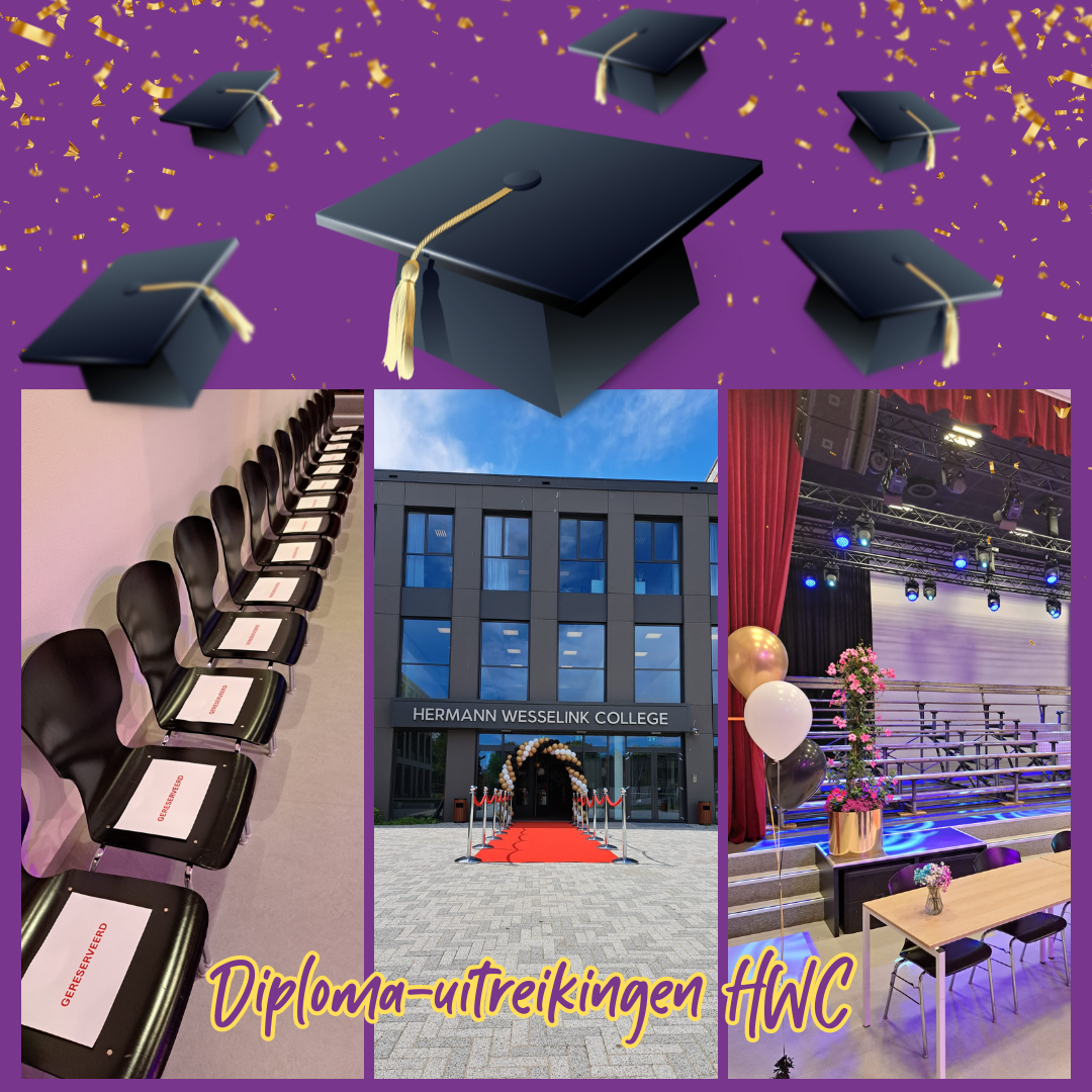 Het is tijd om te vieren! Het Hermann Wesselink College nodigt alle leerlingen van vmbo-t 4, havo 5 en vwo 6 - èn hun familie - uit voor de diploma-uitreikingen. Op drie dagen zetten we onze afstudeerders in het zonnetje. Vandaag is dat vmbo-t 4, morgen havo 5 en tot slot op woensdag vwo 6.