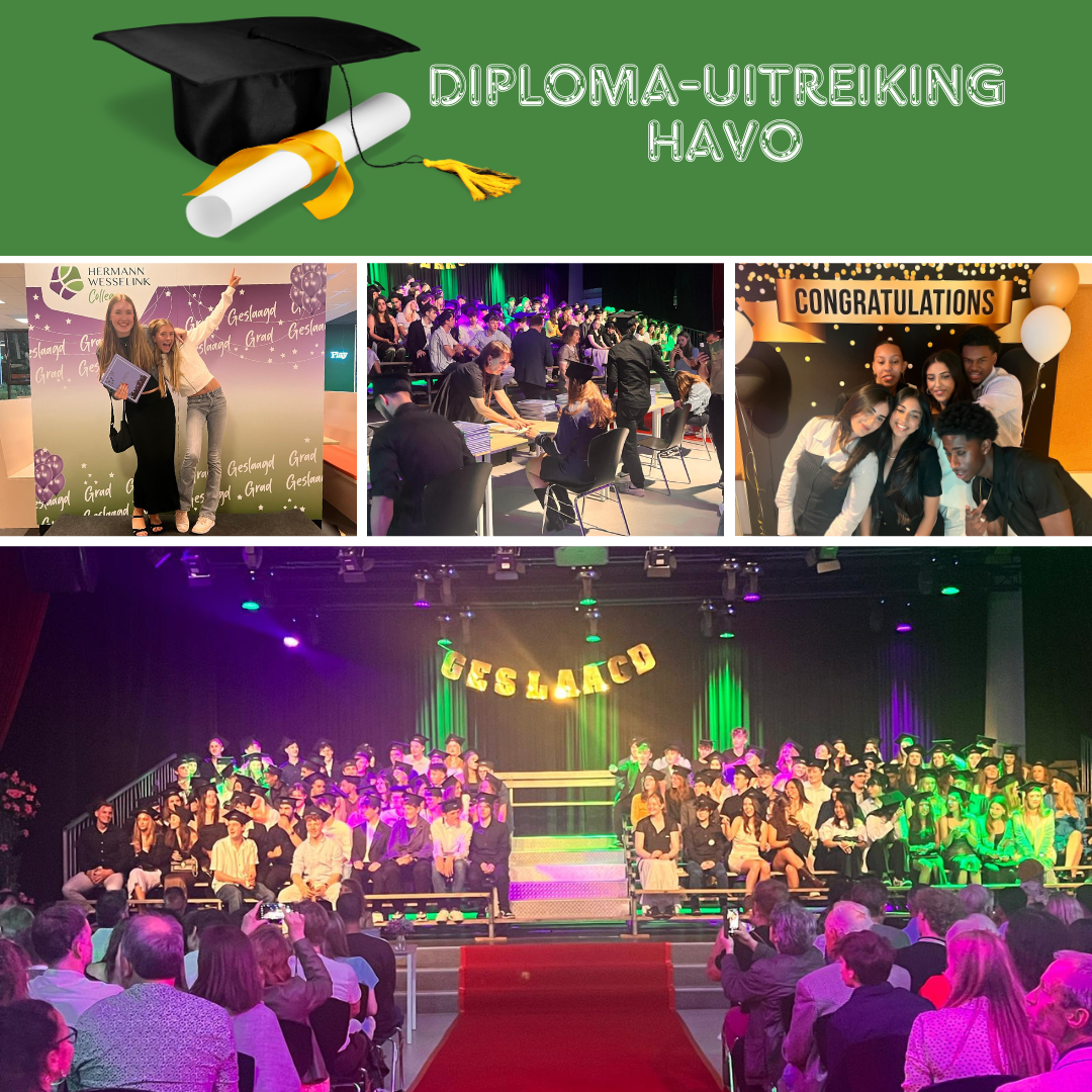 Gisteravond ontvingen onze geslaagde havo-leerlingen tijdens een feestelijke bijeenkomst hun welverdiende diploma. Er waren mooie woorden van hun mentor, aangevuld met een toespraak van rector meneer Kozijn en teamleider mevrouw Hamaker. Ook werd een aantal leerlingen extra in het zonnetje gezet omdat zij Cum Laude waren geslaagd. En één leerling ontving het certificaat ‘Voortreffelijk resultaat’ voor het vak filosofie.