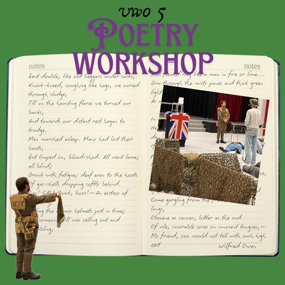 Op vrijdag 18 oktober was het Britse theatergezelschap Phileas Fogg wederom op het HWC. Ditmaal om met 65 vwo 5-IB leerlingen een Engelstalige workshop te doen die de leerlingen liet ervaren hoe het was om een soldaat in de Eerste Wereldoorlog te zijn. Dit gebeurde onder andere aan de hand van een aantal beroemde gedichten, zoals Dulce et Decorum Est. Dit is een beroemd gedicht van de Engelse dichter Wilfred Owen, geschreven tijdens de Eerste Wereldoorlog. Het gedicht beschrijft op indringende wijze de verschrikkingen van het slagveld en confronteert de lezer met de brute realiteit van oorlog, in tegenstelling tot de heldhaftige en glorieuze beelden die vaak gepresenteerd worden.