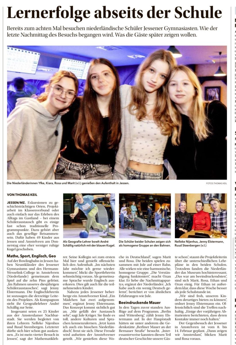 Op zaterdag 18 januari vertrok v3a naar partnerschool Gymnasium Jessen in Duitsland. De leerlingen werden verwelkomd door de school èn door hun gastgezinnen. De zondag werd doorgebracht met de gastouders en gastleerlingen.