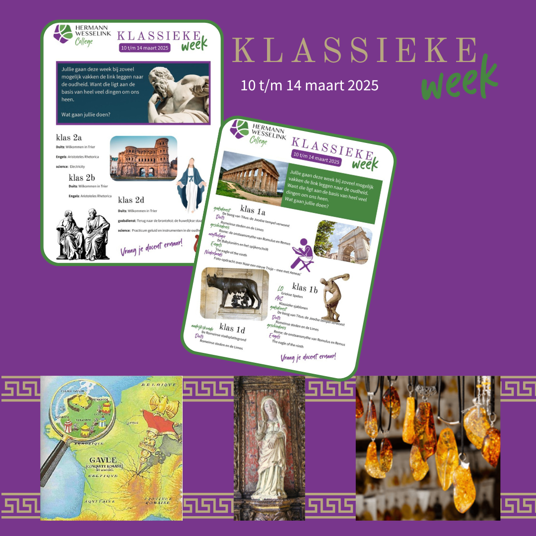 Tijdens de Klassieke Week gingen de leerlingen van gymnasium 1 en 2 bij zoveel mogelijk (reguliere en Engelstalige) vakken aan de slag met de oudheid. Want die ligt immers aan de basis van heel veel dingen om ons heen.