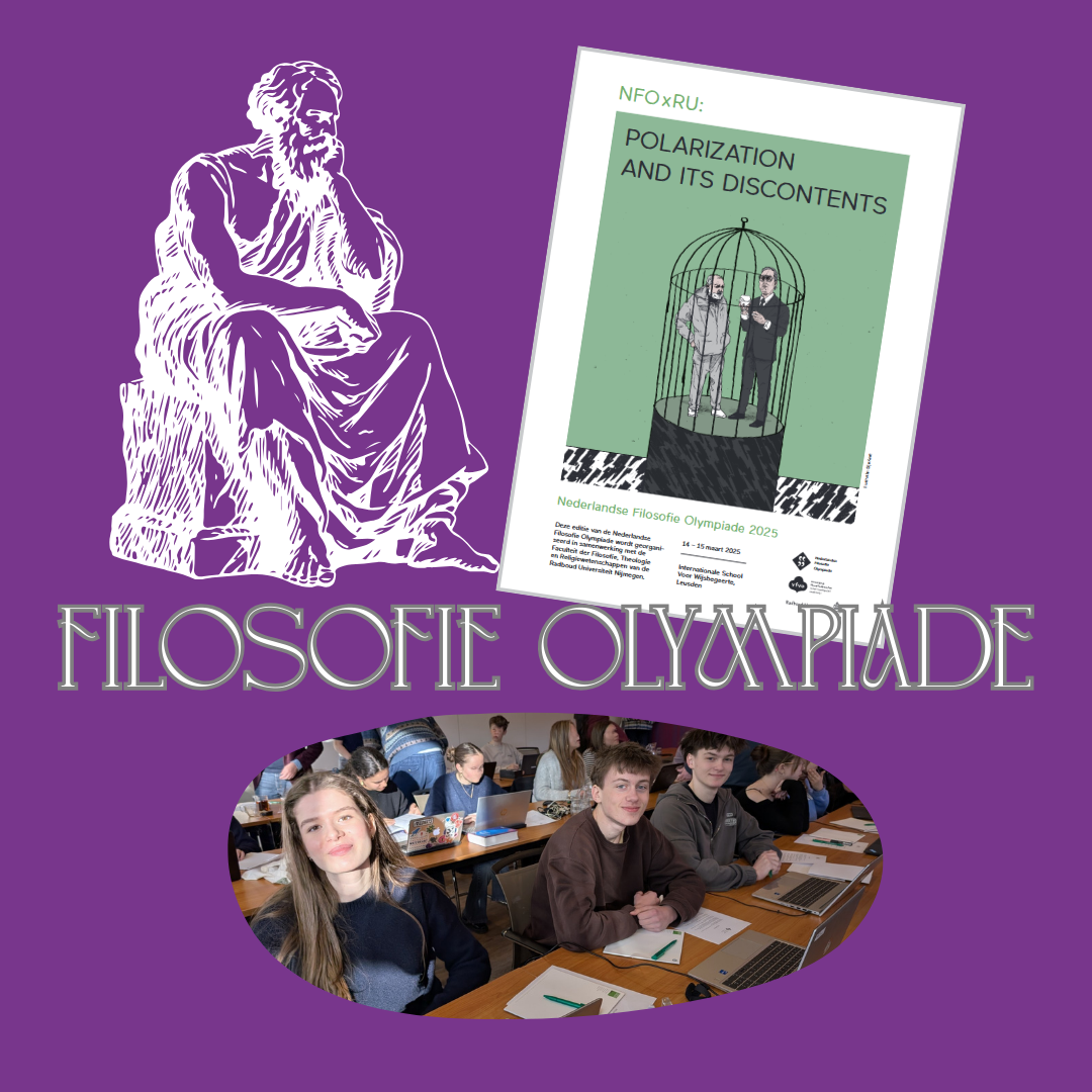 Drie filosofen uit vwo 5 hebben vorige maand deelgenomen aan de Nederlandse Filosofie Olympiade, een filosofische essaywedstrijd op het landgoed van De Internationale School voor Wijsbegeerte in Leusden. Naast het schrijven van een filosofisch essay hebben Eliza Nawijn, Jutte Probst en Gijs Wessels lezingen en workshops gevolgd, verzorgd door filosofen van de Radboud Universiteit.