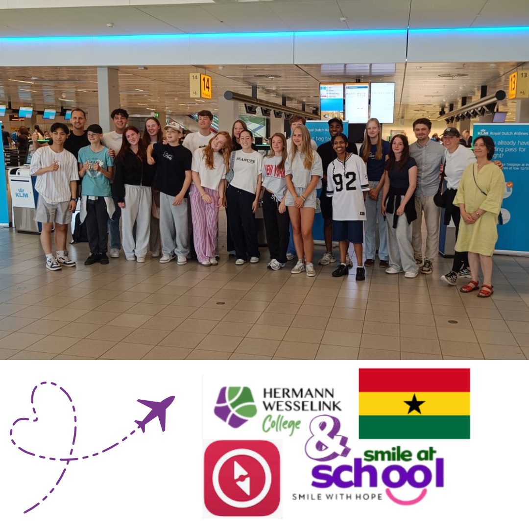 Al maandenlang hét gespreksonderwerp van de school, de directie, de docenten en de leerlingen. Twee jaar geleden zijn de docenten en leerlingen van het Hermann Wesselink College voor het eerst naar Ghana geweest. Nu, 21 juni 2025 vertrekt de groep van 14 leerlingen en 6 docenten en medewerkers opnieuw naar Accra om een cultureel en educatief bezoek te brengen aan Smile at School.